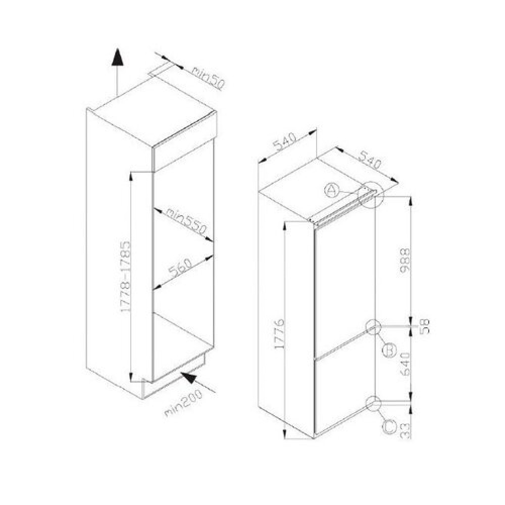 габариты ниши для встраивания (ВxШxГ) 177.8 х 56 х 55 см
