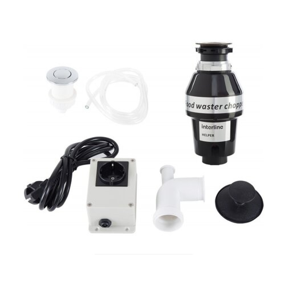 измельчитель, пневмовыключатель (выключатель, шнур), резиновая пробка, фланец мойки, монтажный узел. инструкция, гарантийный талон