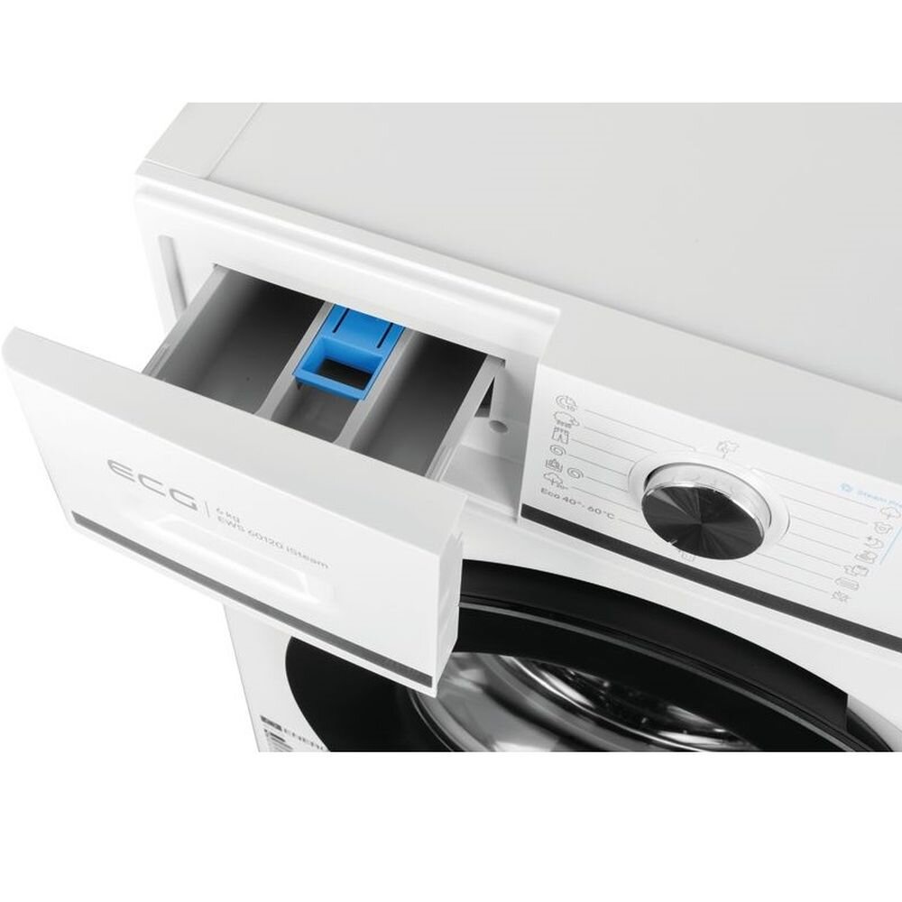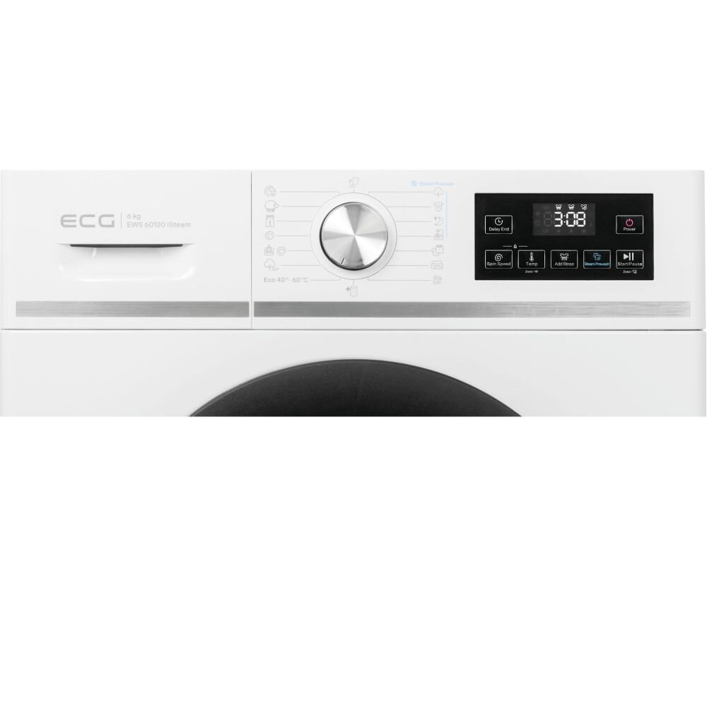 Стиральная машина ECG EWS 60120 iSteam - с классической фронтальной загрузкой, порадует современным дизайном, простым управлением с понятными иконками и передовыми технологиями для идеального ухода за одеждой.
